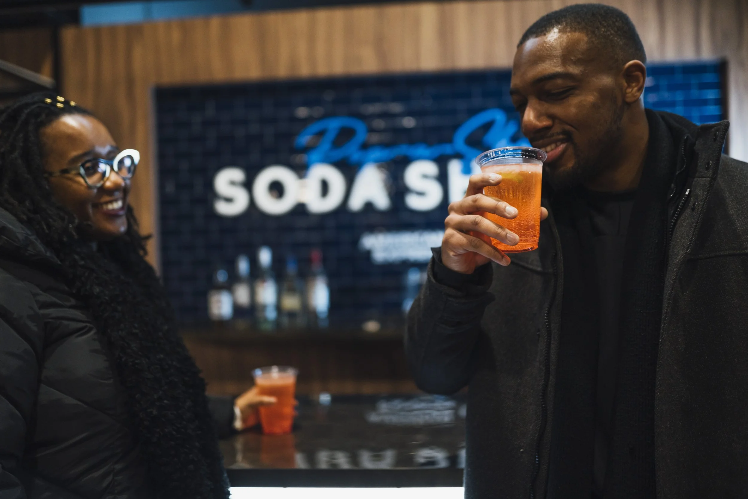 Adjacent to the fan fest, we built a miniature basketball town square featuring a number of storefronts - each featuring a small business (popcorn and churros!), merch, customisation, photo moments and a not-so-secret entrance to our card member speakeasy feature Utah’s own Dirty Sodas. The square and speakeasy hosted All Star and celebrity appearances and chalk talks allowing visitors experience another side to the game they love.